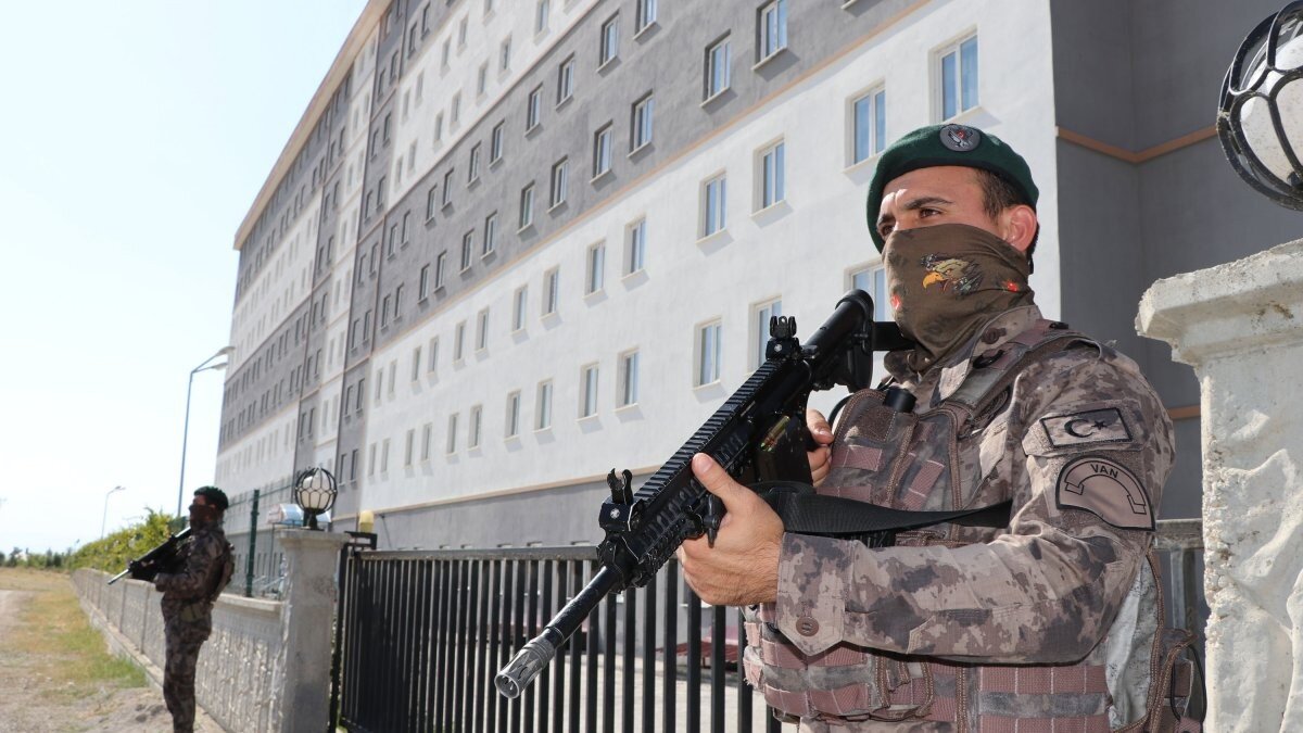 Yurt önünde tulum giyip, maske takan polis ekipleri, bina girişinde sürekli kontroller yaparken, özel haraket polisleri de çevrede geniş güvenlik önlemi alıyor.