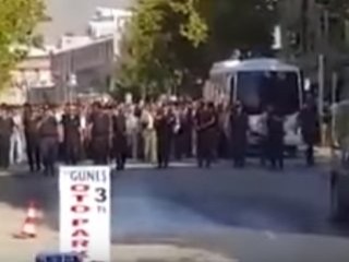 Hz. Ömer Camisi önünde bir araya gelen grup, ellerinde Türk bayraklarıyla saldırının yaşandığı İki Nisan Polis Merkezi'ne yürüdü.