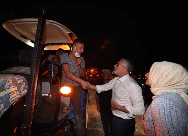 Burada sivil, özel tüm birimlerimiz yangına müdahale ediyorlar. Allah afeti tekrar yaşatmasın inşallah, dileğimiz bu. Az önce Tarım ve Orman Bakanımız ifade etti, 15 Eylül'e kadar da teyakkuz halinde olmamız lazım. Dikkatli olmalıyız. En ufak bir kıvılcımla ormanlarımız zarar görebiliyor. Bu çerçevede inşallah vatandaşlarımızın teyakkuzda olmasını özellikle istirham ediyorum. Hep birlikte inşallah bu tür afetleri bir daha yaşamayız. Üzerimize düşen bir şey olursa da 24 saat çalışmaya hazırız, Allah bir daha bu tür afetleri yaşatmasın.