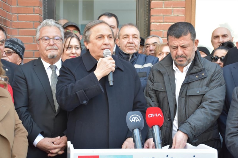 CHP İl Başkanlığı'nı ziyaret eden Ağbaba ve Torun, bina önünde toplanan partililere seslendi.