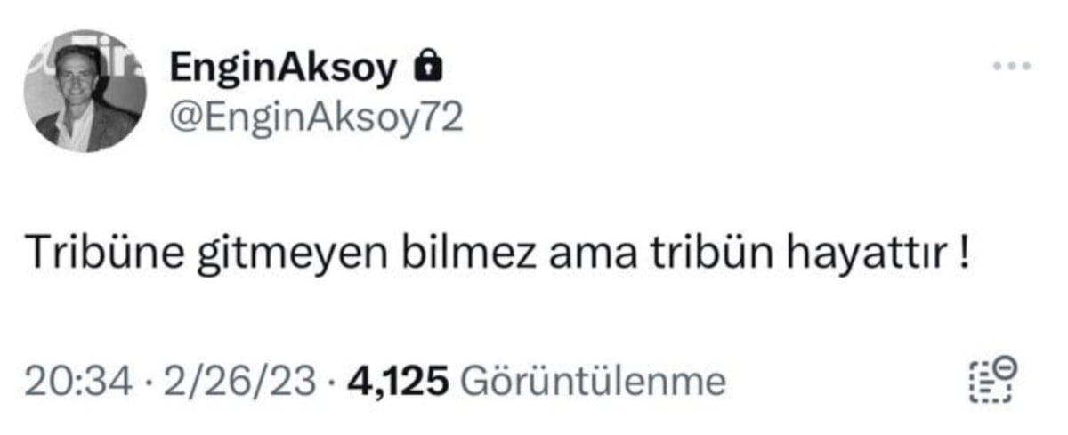 Aksoy, tribünlerden yükselen istifa sloganlarına sosyal medya hesabından “Tribüne gitmeyen bilmez ama tribün hayattır!” ifadelerini kullandı. Aksoy, daha sonra gelen tepkilerle önce hesabını gizliye aldı daha sonra attığı destek tweet'ini sildi.