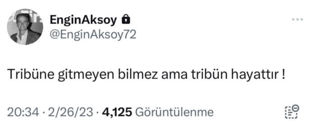 Aksoy, tribünlerden yükselen istifa sloganlarına sosyal medya hesabından “Tribüne gitmeyen bilmez ama tribün hayattır!” ifadelerini kullandı.