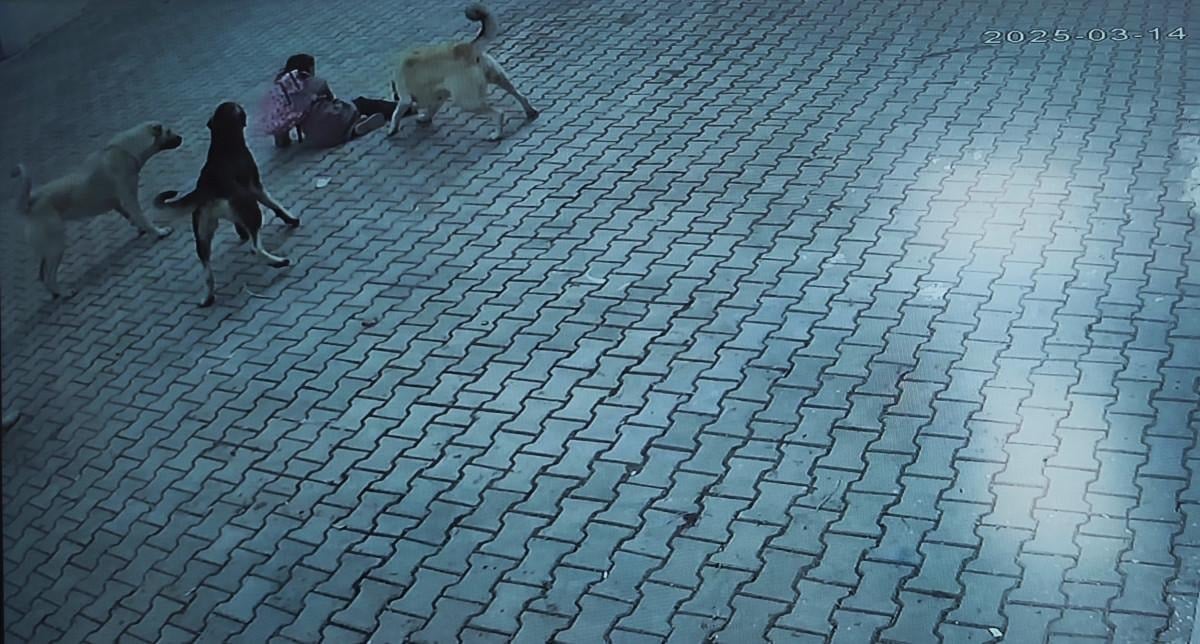 Küçük çocuğun çığlıklarını duyan çevredeki vatandaşlar köpekleri uzaklaştırdı. Korku dolu anlar ise güvenlik kamerasına yansıdı.