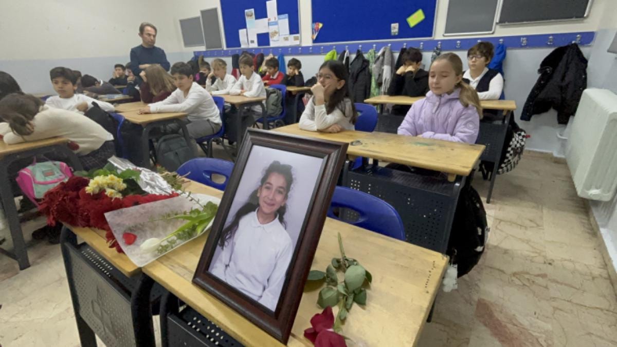 Otel yangınında babası ve babaannesiyle yaşamını yitiren 5. sınıf öğrencisi Mina Akişli, okul bahçesinde düzenlenen törende anıldı.