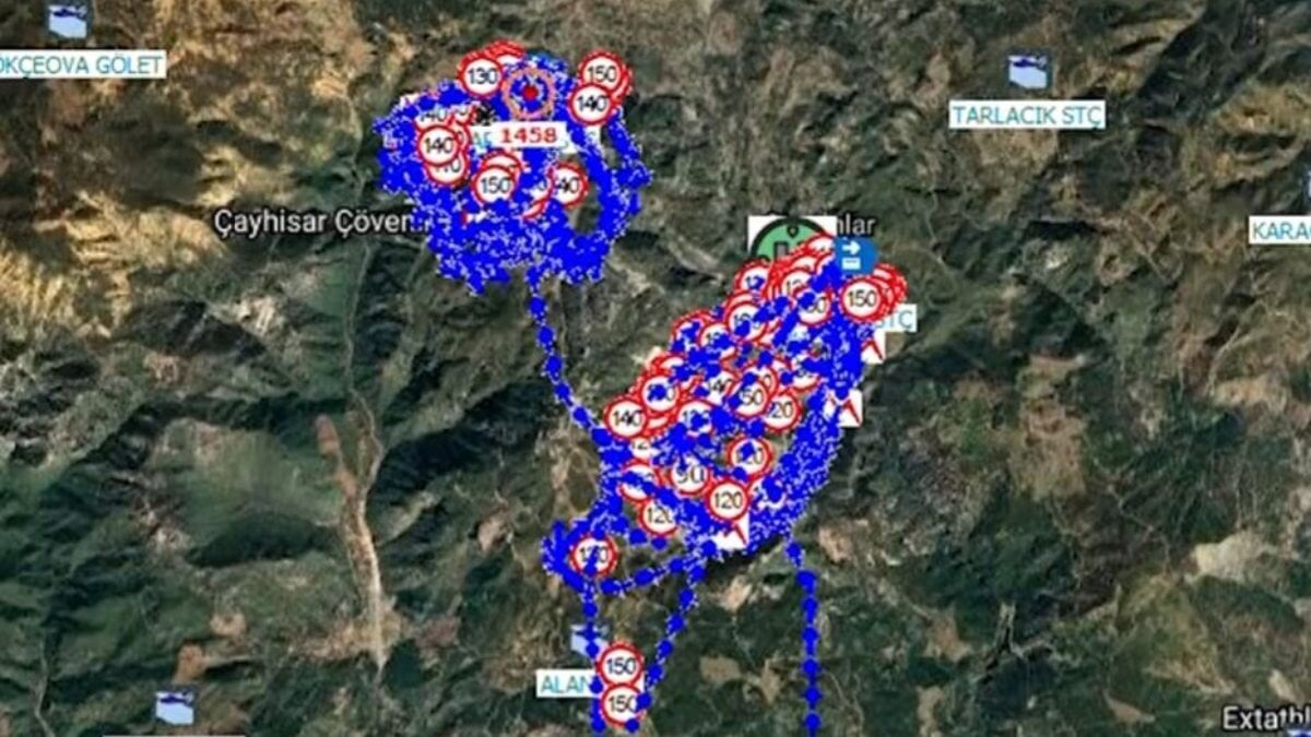 Haritalı paylaşımda, yangın çıkan noktalara yönelik gerçekleştirilen çok sayıda hava operasyonu görülüyor.