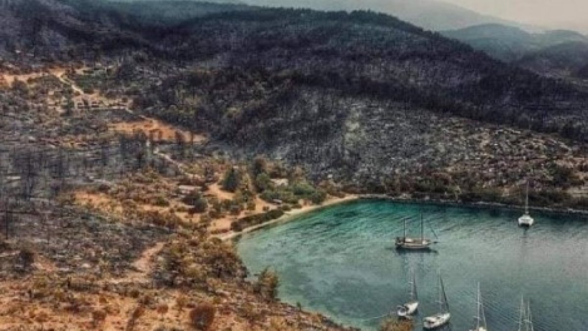 Ters esen rüzgar ile alevlerin tamamını sardığı Çökertme Koyu'nun, yangın sonrası çekilen görüntüsü, büyük bir üzüntü ile karşılandı.