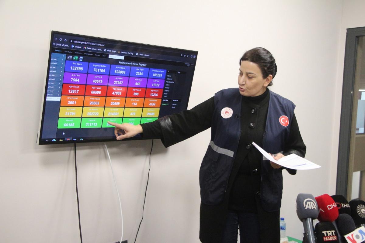 Aslan, "Kahramanmaraş merkezli depremin ardından etkilenen 10 ildeki hasar tespit çalışmalarımız 6 bin personel ile devam ediyor. İldeki hasarın durumuna göre personel sayımız değişiyor. Bu zamana kadar 10 ilde 132 bin 898 bina incelendi. Bu binalarda 761 bin 104 bağımsız bölüm incelenmiş oldu. Bu incelemeler içerisinde bina bazlı olarak 7 bin 584 adedi yıkık ya da acil yıktırılması gereken yapılar. 12 bin 617 adet yapıda ağır hasarlı yani oturulamaz kullanılamaz durumda olan yapı olarak tespit edildi. Bunların bağımsız bölüm olarak karşılığı da 100 bin bağımsız bölüme tekabül ediyor. Yani 100 bin bağımsız bölümde oturulması mümkün değil gibi gözüküyor." dedi.