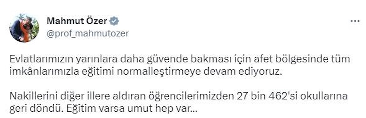 Özer, yaptığı paylaşımda şu bilgileri aktardı: