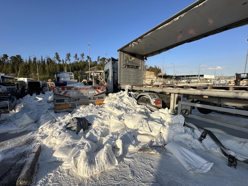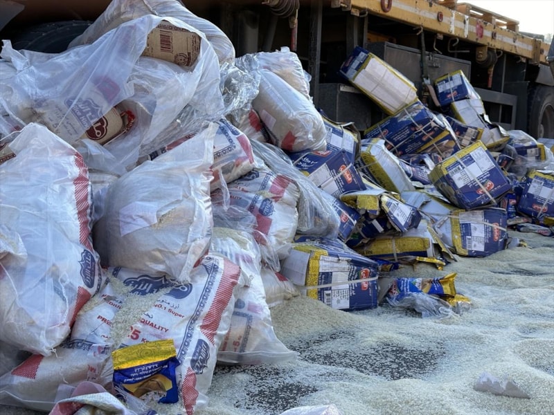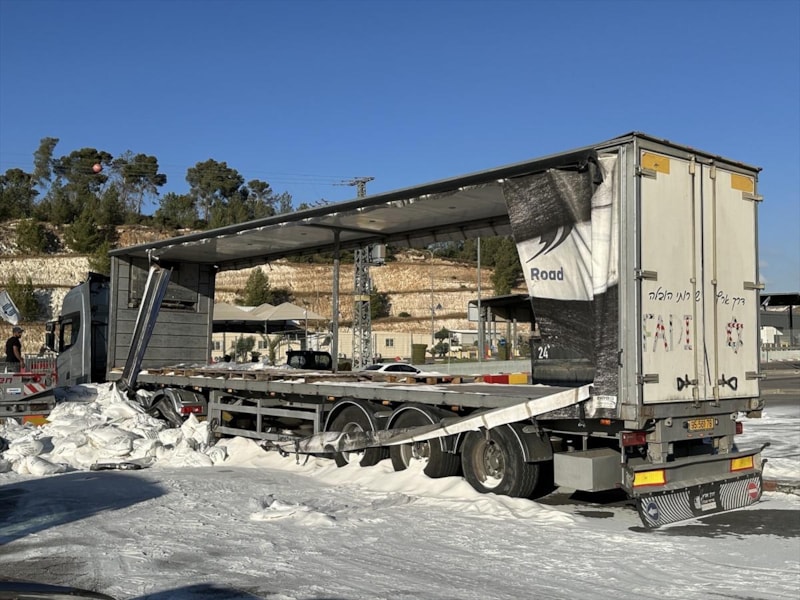 Tırları durduran Yahudi yerleşimciler, Gazze'ye gitmesi planlanan yardımları yola döküp ateşe verdi.