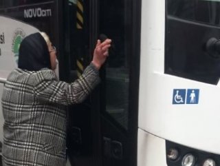 Emekli öğretmen olduğu öğrenilen 70 yaşlarındaki bir kadın, yasağa rağmen halk otobüsüne binmekte direndi.