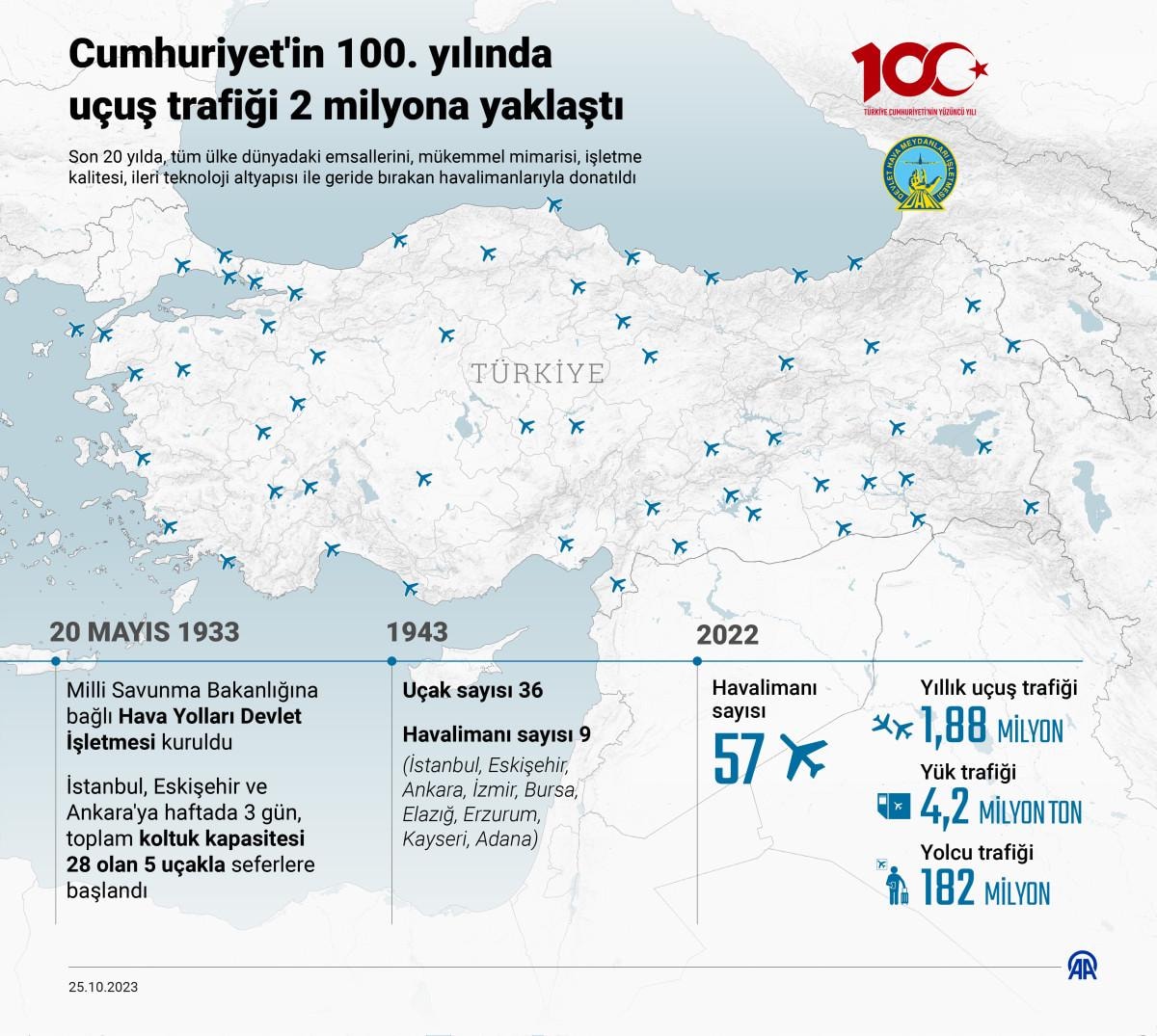 Ulaştırma ve Altyapı Bakanlığından alınan bilgiye göre, 20 Mayıs 1933'te Milli Savunma Bakanlığına bağlı Hava Yolları Devlet İşletmesi kuruldu.