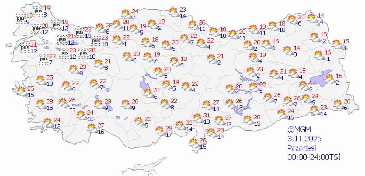 MGM verilerine göre, hafta sonu ülke genelinde güneşli ve ılık hava etkisini sürdürürecek ancak yeni haftada pastırma sıcakları bitecek.