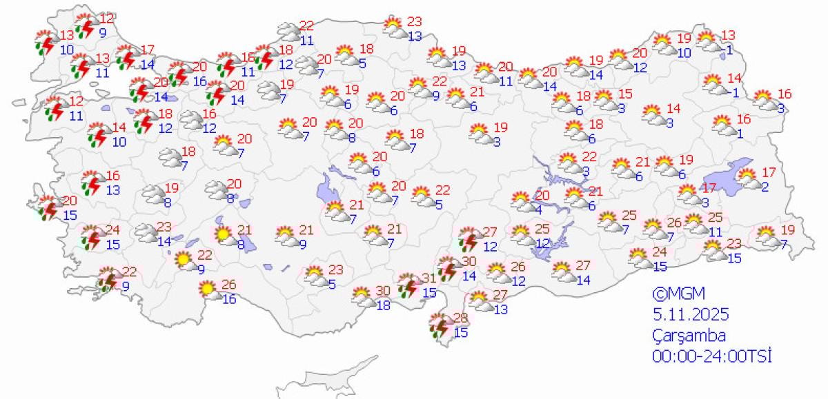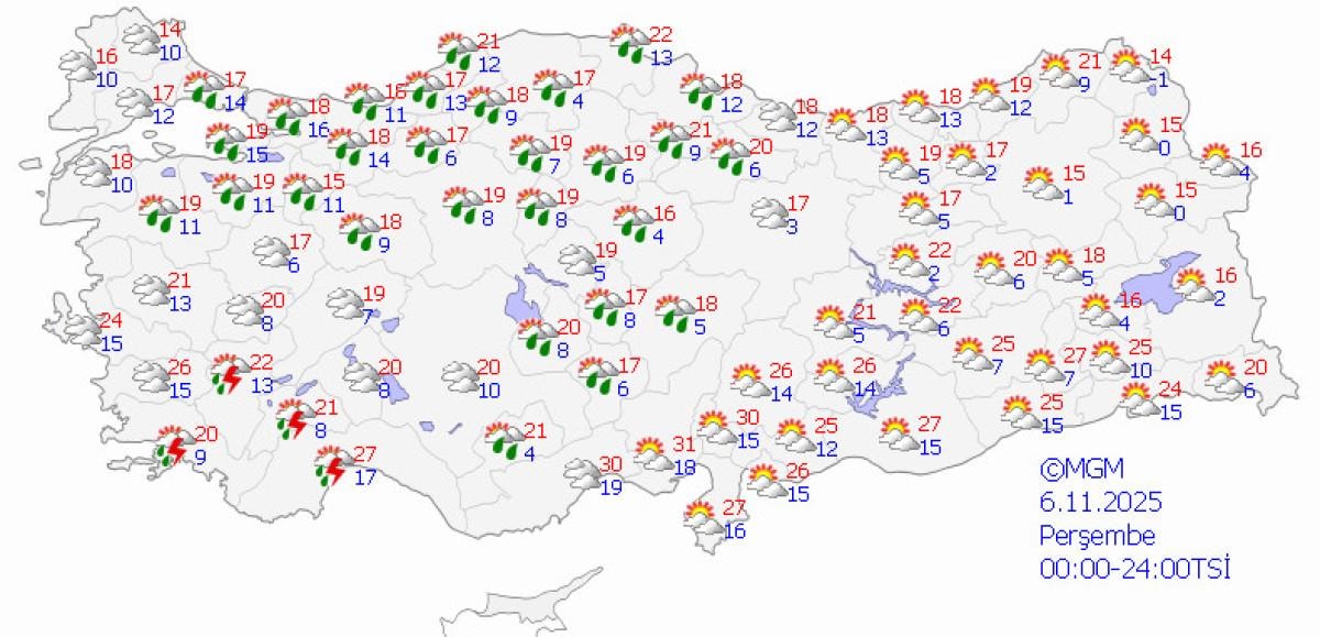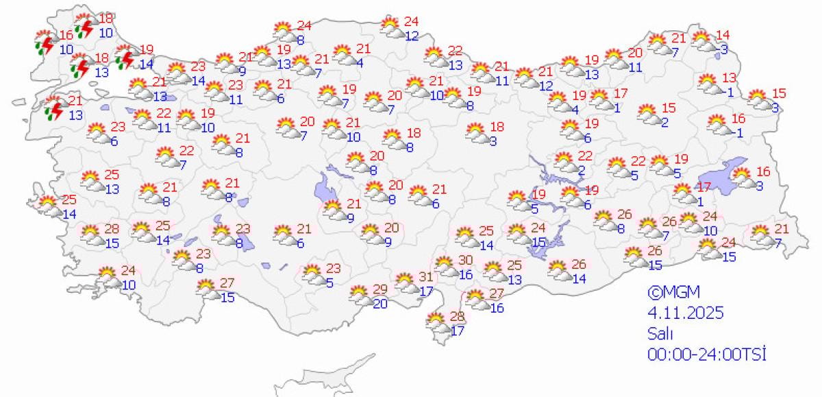 - Sıcaklıklar Ege, Akdeniz ve İç Anadolu'da 20–28 derece arasında seyredecek.