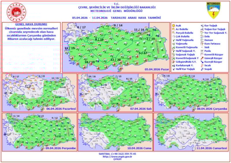 Meteoroloji Genel Müdürlüğü (MGM), yeni hava durumu raporunu yayımladı.