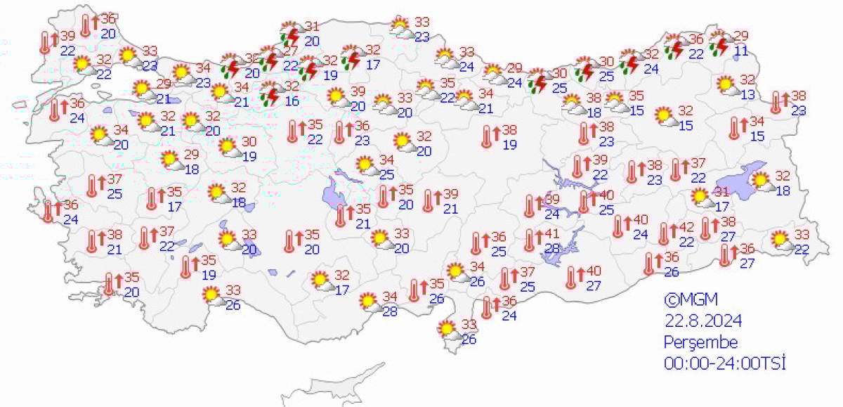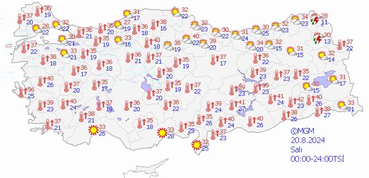Hafta boyunca hava sıcaklıklarının kıyı kesimlerde mevsim normallerinin 1 ila 3 derece; Marmara Bölgesi'nin güney kesimleri, İç Ege, Akdeniz Bölgesi'nin iç kesimleri, İç Anadolu, Karadeniz Bölgesi'nin iç kesimleri ve Doğu Anadolu Bölgesi ile Güneydoğu Anadolu Bölgesi'nin kuzey kesimlerinde mevsim normallerinin 4 ila 8 derece üzerinde seyretmesi bekleniyor.