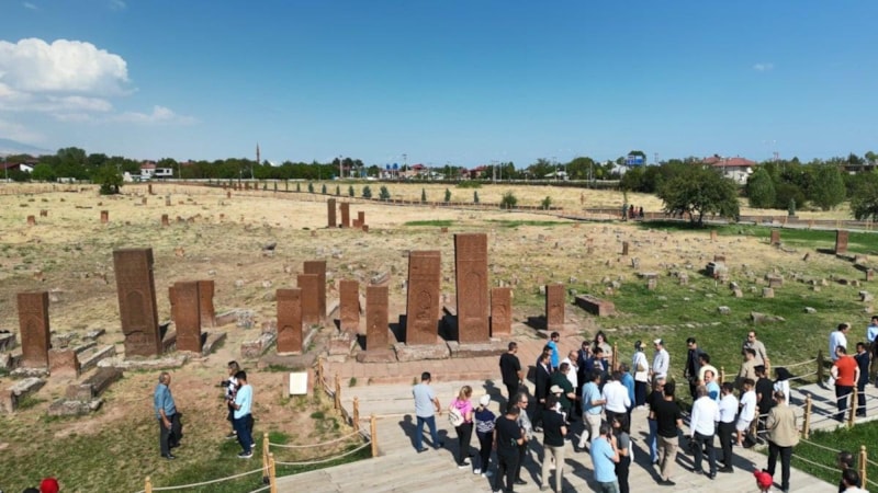 Bitlis kent merkezindeki tarihi çarşıyı keşfeden yolcular, Bitlis'in Ahlat ilçesindeki Ahlat Selçuklu Mezarlığı'nı da görme fırsatı buldu.