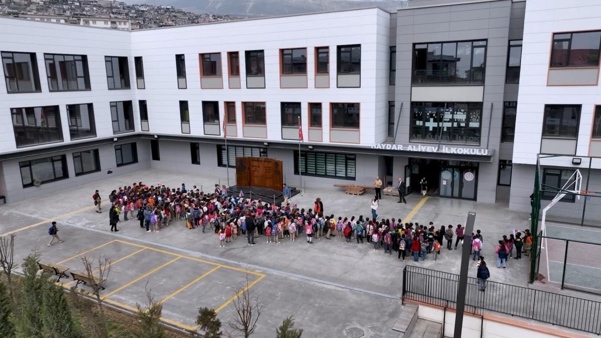 Murat Kurum'un paylaştığı videoda, 1.183’ü konut, 1.595’i iş yeri olmak üzere toplam 2 bin 778 bağımsız bölümün yapıldığı Azerbaycan Mahallesi ve o mahalledeki Haydar Aliyev İlkokulu’nda eğitim alan öğrenciler ile Ebrar Sitesi'nin görüntüleri yer alıyor.