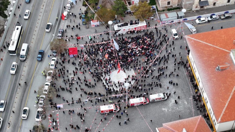 Fatih Erbakan ve Konya Büyükşehir Belediye Başkanı Adayı Mehmet Köseoğlu’nun seçim otobüsü üzerinde konuşma yaptığı esnada çekilen fotoğraflarda, meydanın yarısını bile doldurulamadığı görüldü.