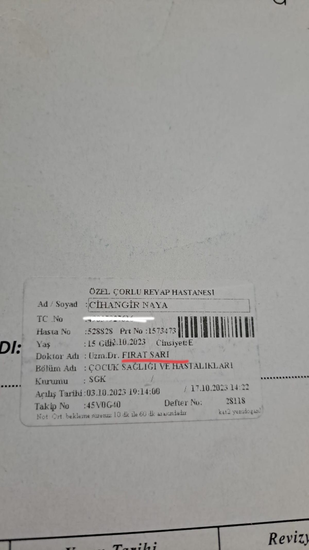 2 Ekim 2023 tarihinde Edirne'de doğan bebek, solunum sıkıntısı nedeniyle yoğun bakıma alındı. Edirne Devlet Hastanesi'nde yer olmaması nedeniyle bebek, ambulansla Çorlu Reyap Hastanesi'ne sevk edildi. Bebekle, Dr. Fırat Sarı ilgilenmeye başladı.