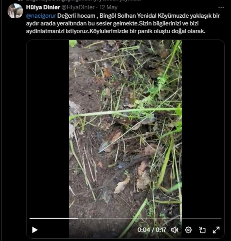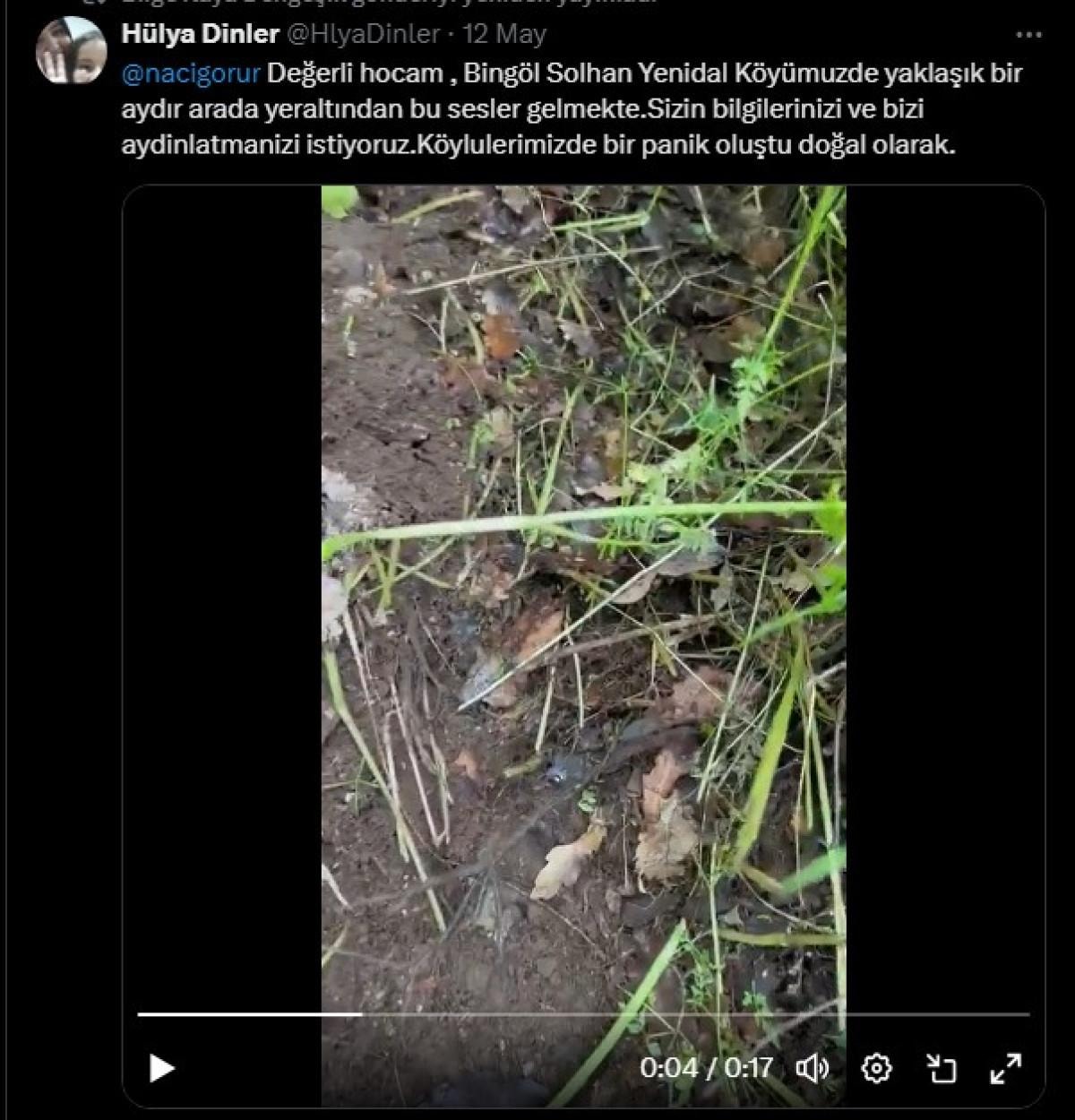 Bingöl'ün Solhan ilçesi Yenidal köyü kırsalında yer altından seslerin geldiği görüntüler, sosyal medyada olay oldu.