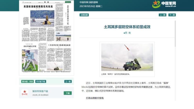 Çin'in ordu gazetesi, Türkiye'nin hava savunma sistemlerindeki gelişimini ele aldı.
