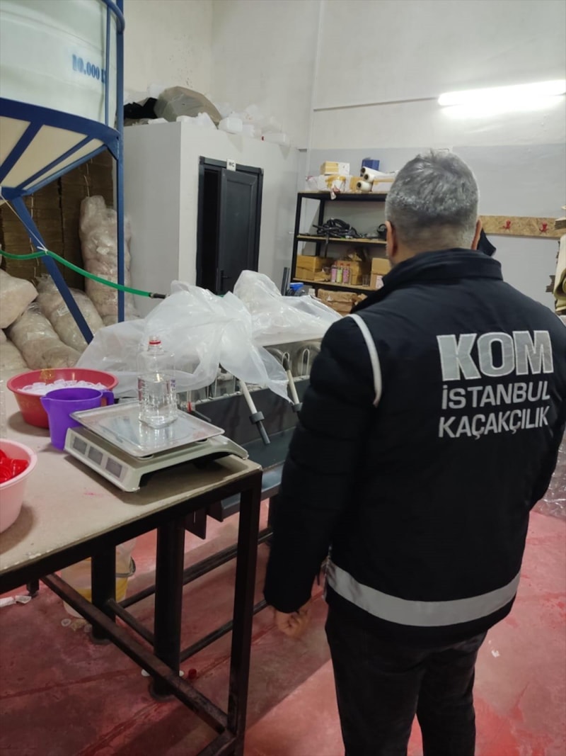 Ekiplerce alkollü içki kaçakçılığının önlenmesine yönelik çalışmada, kimya ve dezenfektan alanında firmaları olan şüphelilerin, bu sayede temin ettikleri etil alkolleri, sahte içki üretenlere, bidonların üzerine yüzey temizleyici ve içilemez yazılı etiketler yapıştırarak sattıklarını belirledi.