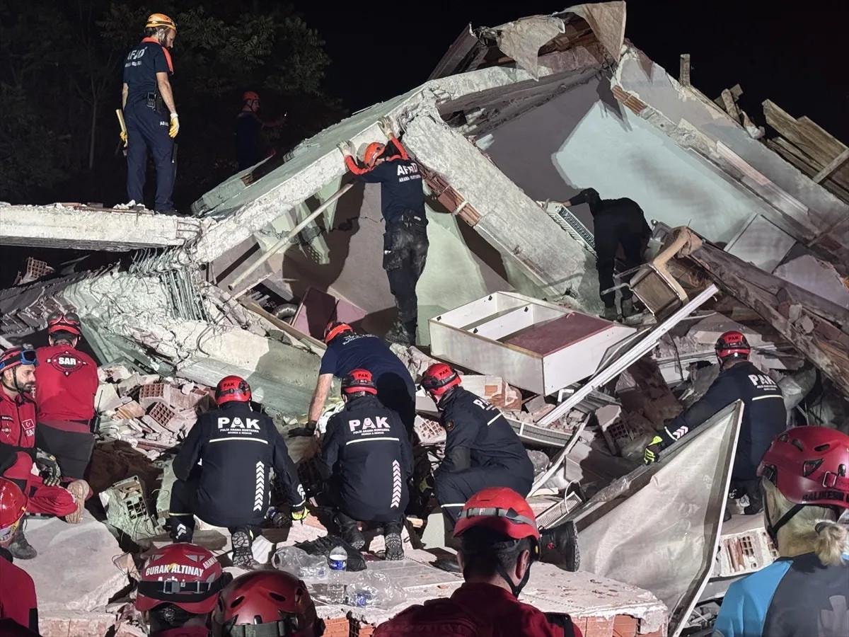 Yıkılan binada enkazda kalan 4 kişi ise, arama kurtarma ekiplerinin çalışmasıyla kurtarıldı.