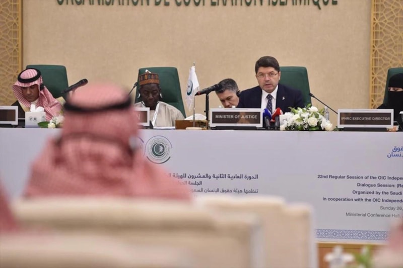 Adalet Bakanı Yılmaz Tunç, Suudi Arabistan'ın Cidde kentinde gerçekleştirilen, 57 ülkenin temsilcisinin katıldığı İslam İşbirliği Teşkilatı Bağımsız Daimi İnsan Hakları Komisyonu 22. Olağan Oturumu'nda konuştu.
