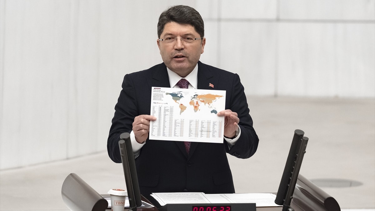 Bakan Tunç, "Türkiye'nin üzerinde gösterilen ülkelere bir bakın, Türkiye'nin üzerinde gösterilen onlarca ülkede demokrasi bile yok. Serbest seçimler yok. Bu proje kimin projesi? Eski ABD Barolar Birliği Başkanı'nın kurduğu bir dernek. Bunu fonlayanlar var. Bağış yapanlarla listede ilk sırada olanlar aynı. Ne kadar bağış yaparsan listede o kadar yukarı çıkıyorsun. Ama bizim bütçemizde bu bağışa ilişkin bir bütçe konulmadı. 2025'te böyle bir rakam söz konusu değil." diye konuştu.