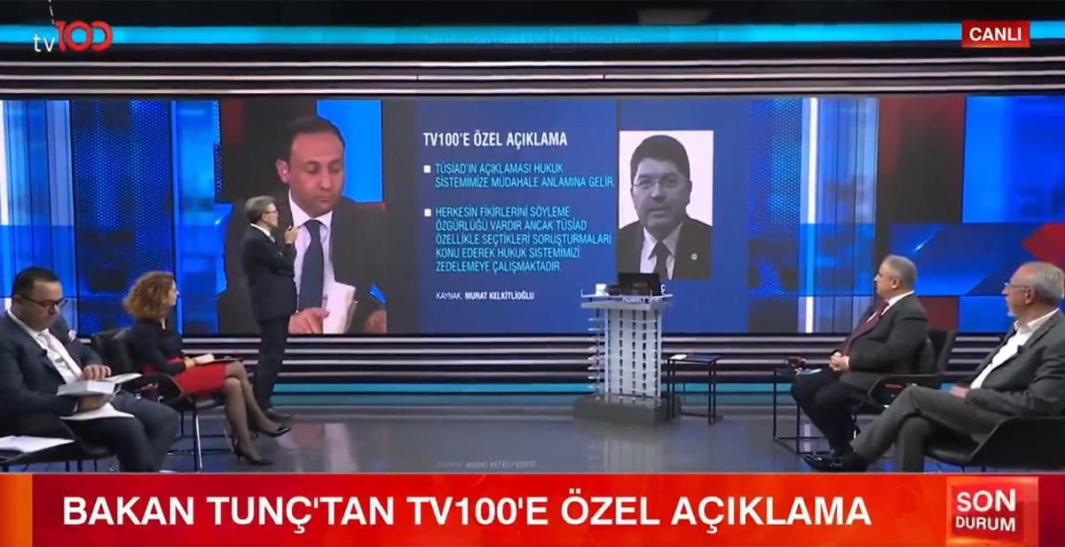 Adalet Bakanı Yılmaz Tunç, TV100'de ekranlara gelen Erdoğan Aktaş ile Eşit Ağırlık programına konuk olan Murat Kelkitlioğlu'na özel açıklamalarda bulundu.