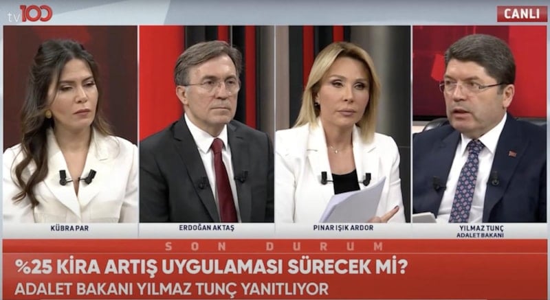 Adalet Bakanı Yılmaz Tunç, katıldığı tv100 canlı yayınında, "Yüzde 25 kira artış uygulaması sürecek mi?" sorusuna yanıt verdi.