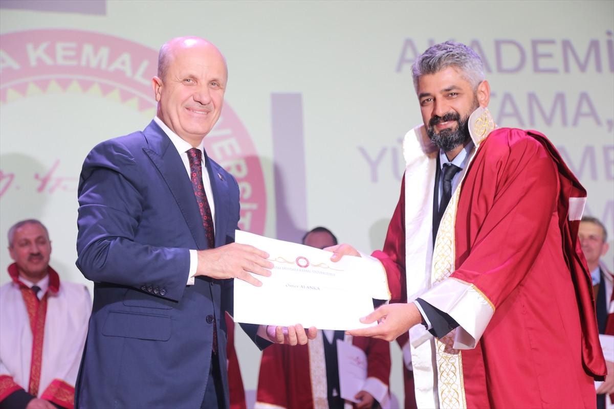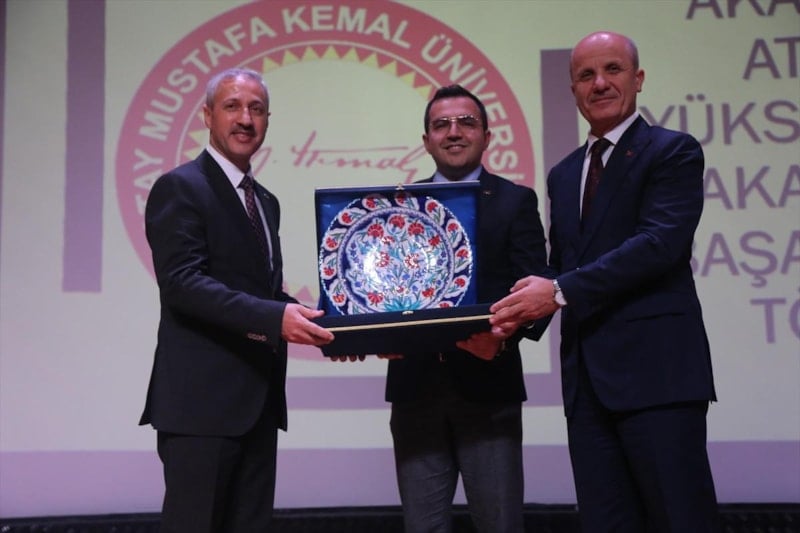 Hatay Mustafa Kemal Üniversitesi’nde düzenlenen ‘Akademik Atama, Yükselme ve Akademik Başarı’ ödül töreni etkinliğine; Vali Yardımcısı Gökay İçen, Yükseköğretim Kurulu (YÖK) Başkanı Erol Özvar ve Mustafa Kemal Üniversitesi Rektörü Veysel Eren katıldı.