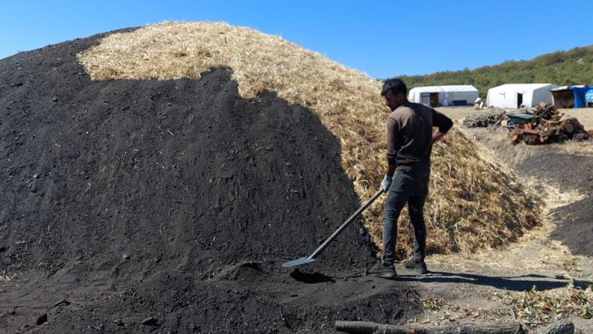 Mardin’in Mazıdağı ilçesinden Yozgat’a geldiğini söyleyen İslam Ay, 3 yıldır mangal kömürü ürettiklerini söyledi.