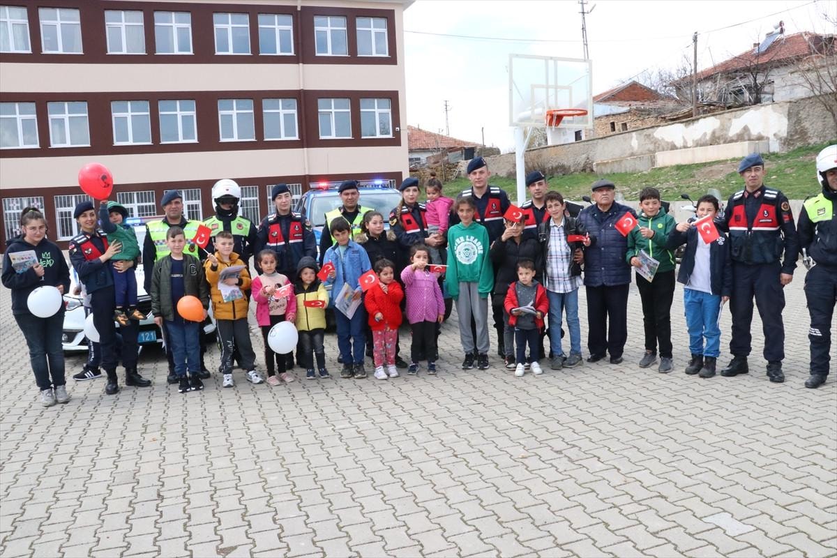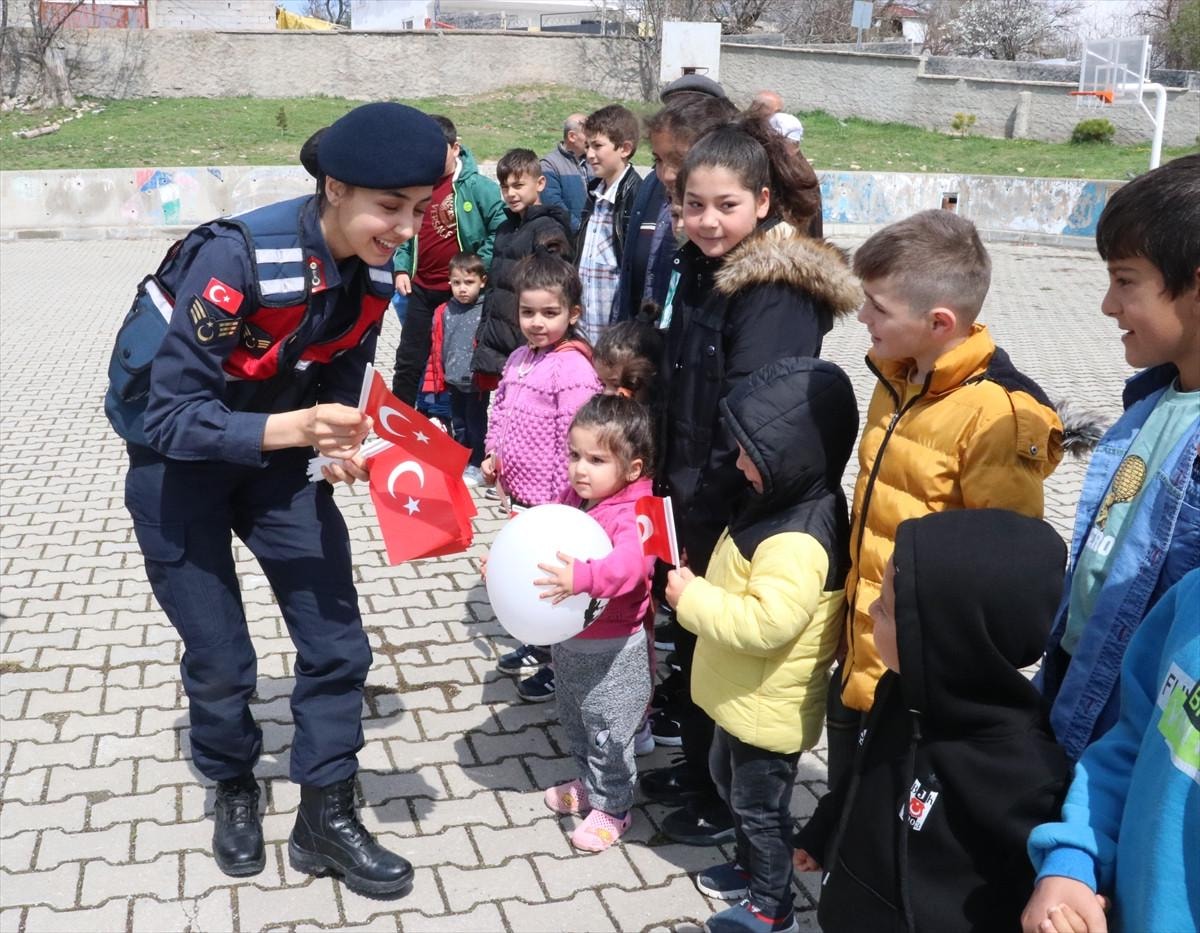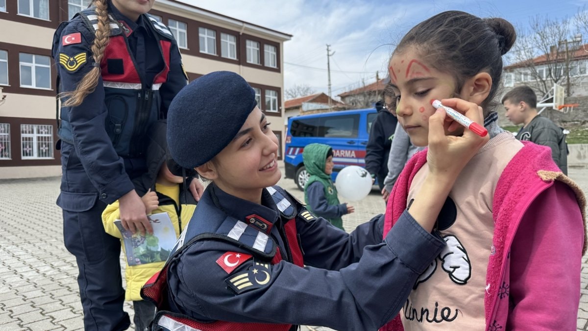 Yozgat'ta Jandarma ekipleri, Ramazan Bayramı öncesi Divanlı Mahallesi Refika-Mustafa Kıymazaslan Ortaokulu bahçesinde çocuklarla bir araya geldi.