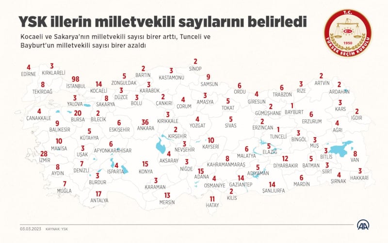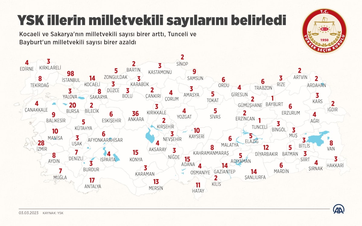 Türkiye'nin 81 ilinin toplamda 600 milletvekili çıkaracağı vurgulandı.