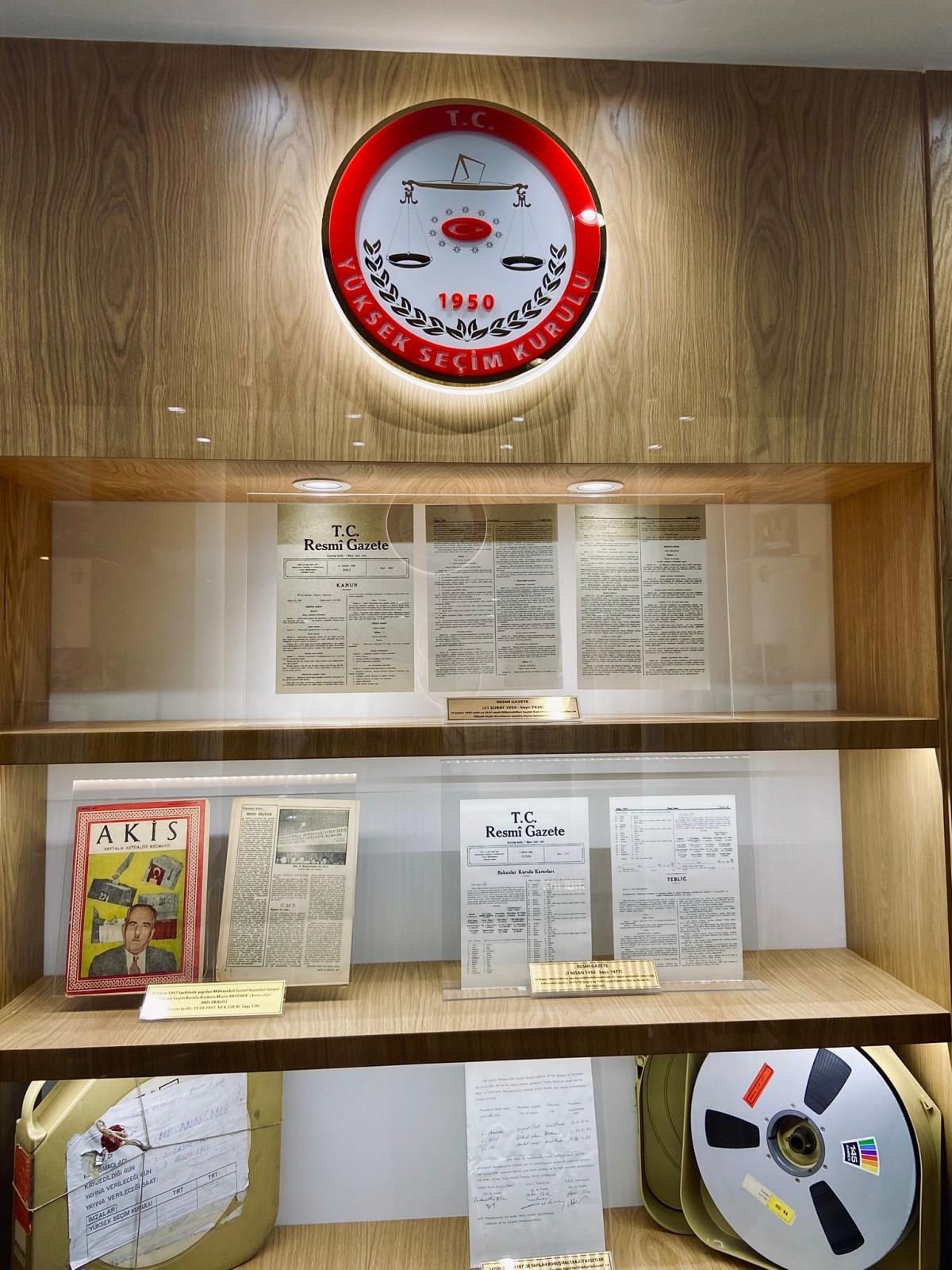 Yüksek Seçim Kurulu'nun giriş katında bulunan müzede, Türkiye'nin seçim tarihine ilişkin pek çok eşya bulunuyor.