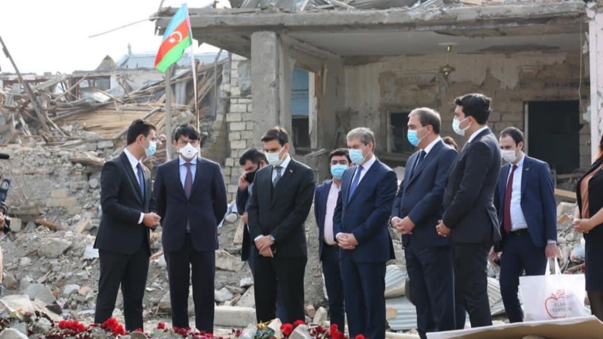 Yurtdışı Türkler ve Akraba Topluluklar (YTB) Başkanı Abdullah Eren, beraberindeki heyet ile Ermenistan'ın balistik füzelerle saldırdığı Gence kentine gitti.