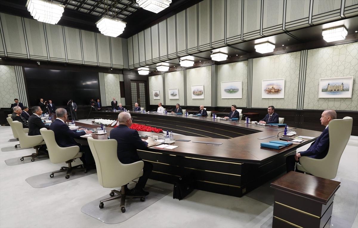Beştepe'deki toplantıya Cumhurbaşkanı Yardımcısı Cevdet Yılmaz, Adalet Bakanı Yılmaz Tunç, Dışişleri Bakanı Hakan Fidan, Hazine ve Maliye Bakanı Mehmet Şimşek, İçişleri Bakanı Ali Yerlikaya, Milli Eğitim Bakanı Yusuf Tekin, Milli Savunma Bakanı Yaşar Güler, Genelkurmay Başkanı Orgeneral Metin Gürak, Kara Kuvvetleri Komutanı Orgeneral Selçuk Bayraktaroğlu, Deniz Kuvvetleri Komutanı Oramiral Ercüment Tatlıoğlu ve Hava Kuvvetleri Komutanı Orgeneral Ziya Cemal Kadıoğlu katıldı.
