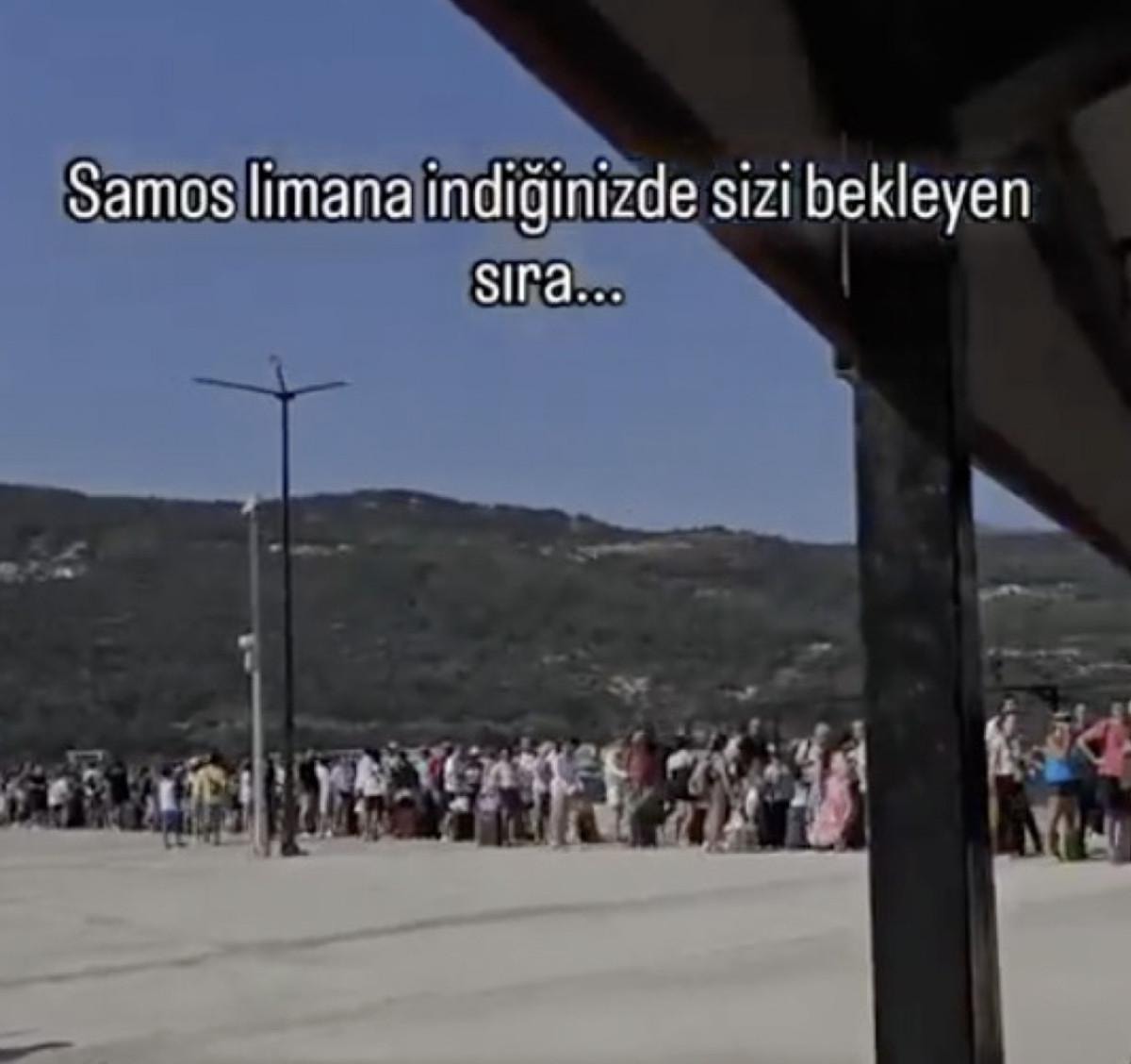 O anları kayda alan vatandaş, "Samos Limanı'na indiğinizde sizi bekleyen sıra" notunu düştü.