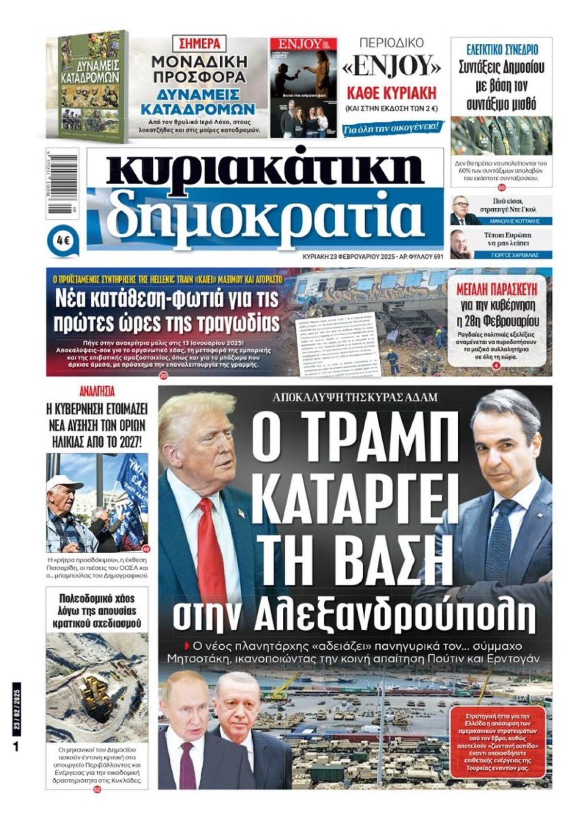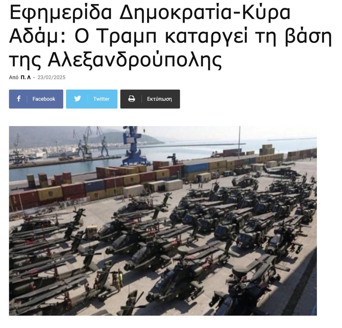 Yunan basınından Dimokratia'nın manşetten verdiği haberde, "ABD Başkanı Donald Trump, Yunanistan'ın Dedeağaç kentindeki ABD askeri varlığını ortadan kaldıracak." ifadeleri kullanıldı.