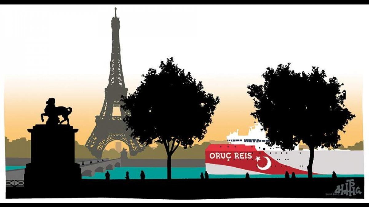Gazete bugün paylaştığı karikatürde Oruç Reis'in Paris'te Sen Nehri'ne sıkıştığını gösterdi.