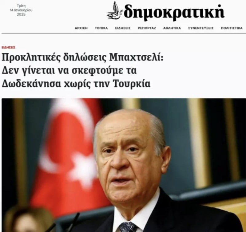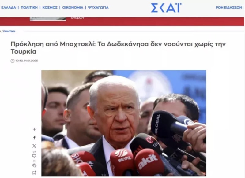 Ülkenin köklü medya kuruluşlarından olan Skai ise Bahçeli'nin sözlerini şu şekilde haberleştirdi: