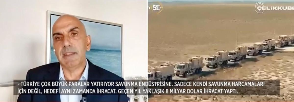 Çok büyük bir yatırım söz konusu. Aselsan, devlet endüstrisi hava savunma sistemlerinin teslim etti. Hepsi Türk yapımı, Çelik Kubbe'yi oluşturuyor. Erdoğan, ayrıca Aselsan için 250 milyon dolar maliyetli 14 tesis açtı. 1,5 milyar dolarlık inanılmaz büyüklükte araziler verdi. Türkiye çok büyük paralar yatırıyor savunma endüstrisine. Sadece kendi savunma harcamaları için değil, hedefi aynı zamanda ihracat. Geçen yıl yajlaşık 8 milyar dolar ihracat yaptı. Türkiye'nin savunma sanayisi aynı zamanda dış politika.