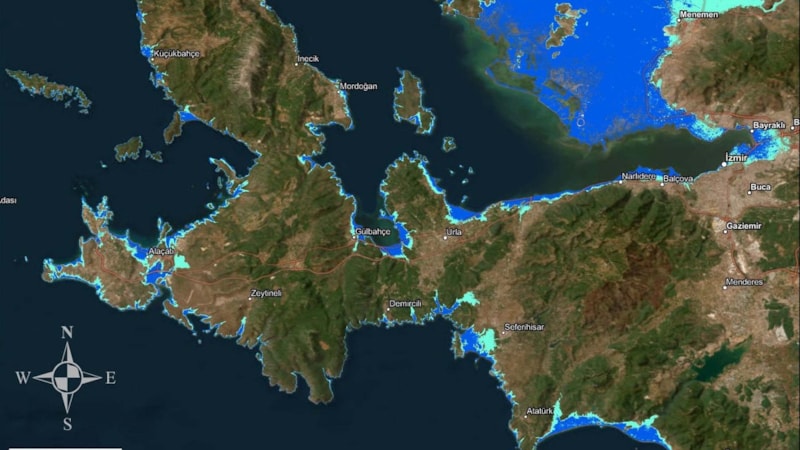 Doç. Dr. Ceyhun Özçelik, Ege Denizi'nde Santorini Adası çevresinde yaşanan deprem fırtınasıyla ilgili Yunanistan ve Türkiye kıyılarında tsunamiden etkilenecek taşkın alanlarının metre metre yer aldığı harita geliştirdi.