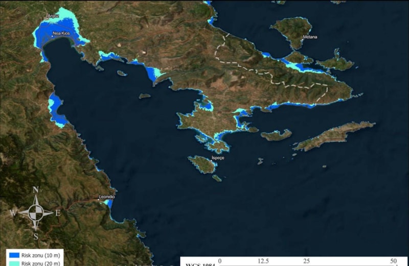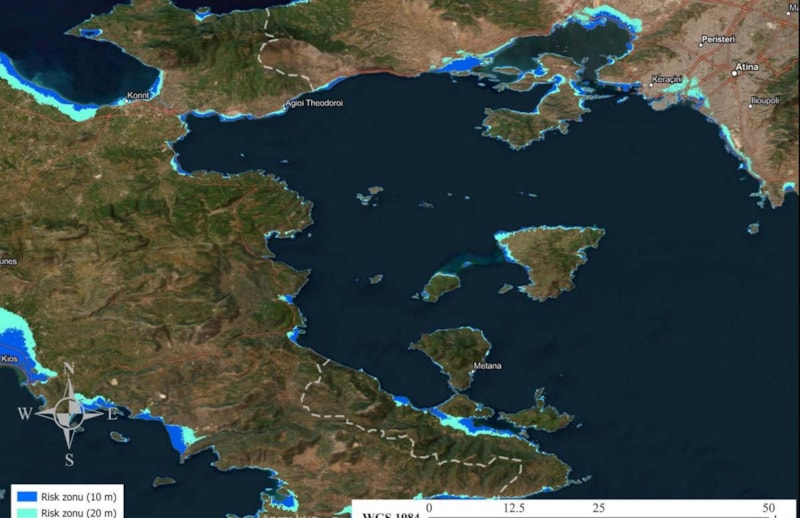 Özçelik araştırmasında, Yunanistan ve Türkiye kıyılarında tsunamiden etkilenecek taşkın alanlarının metre metre yer aldığı harita geliştirdi.
