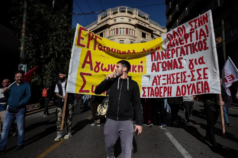 Yunanistan İşçi Sendikaları Konfederasyonu (GESEE), hayat pahalılığına karşı başlattığı genel grev çağrısı üzerine ülke genelinde çeşitli sektörlerdeki işçiler bir günlük iş bırakma eylemi yaptı.