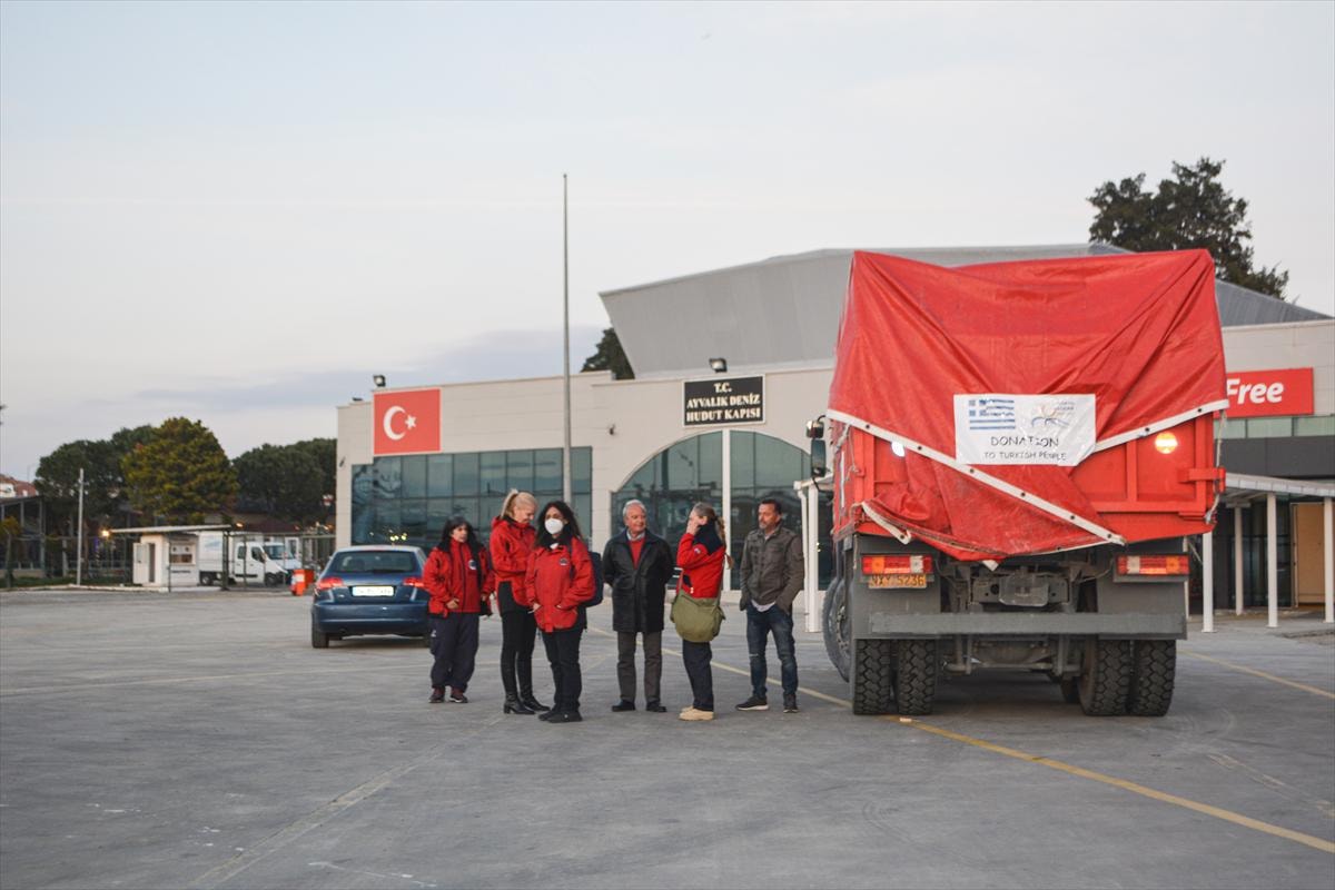 İki tır insani yardımla gelen Halandri Belediyesi Başkan Yardımcıları Elena Christouli ile Christina Maxxira, Solidarity For All Yardım Derneği yöneticileri Manolis Sazzis ve Georgos Sazdedakis'in yanı sıra Yunanistan Arama Kurtarma Derneği Lesvos Şube Başkanı Zoi Livalitou öncülüğündeki heyeti, Ayvalık Belediye Başkan Vekili Tülay Çankaya karşıladı.
