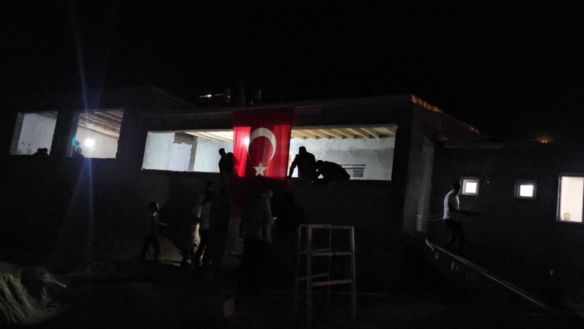 Şehidin baba ocağına Türk bayrağı asıldı.