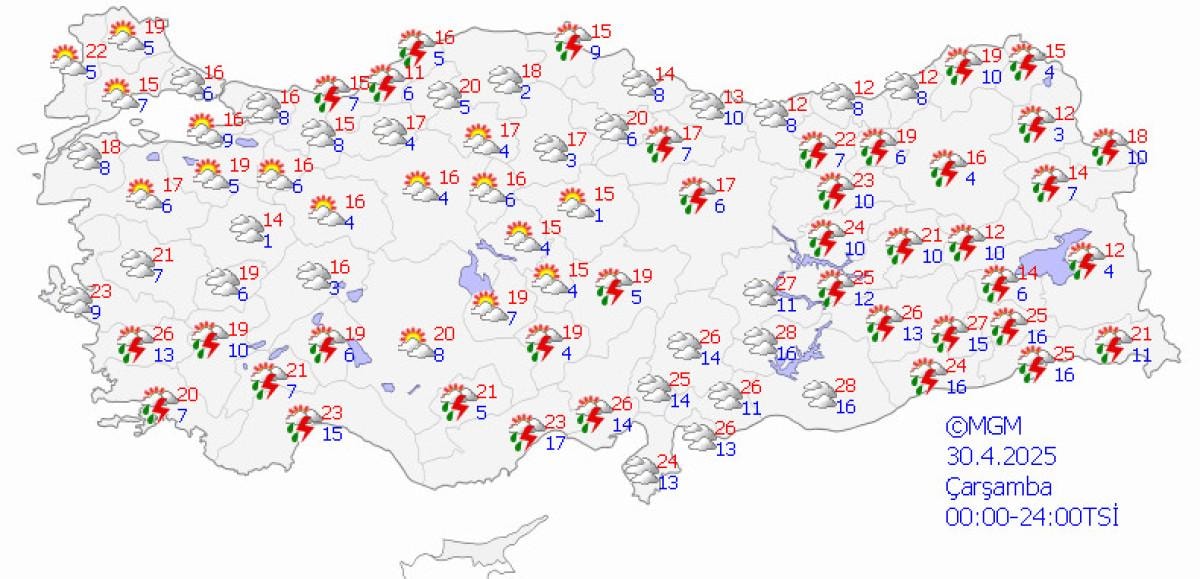 30 Nisan 2025 Çarşamba günü ise hava büyük ölçüde açılıyor.