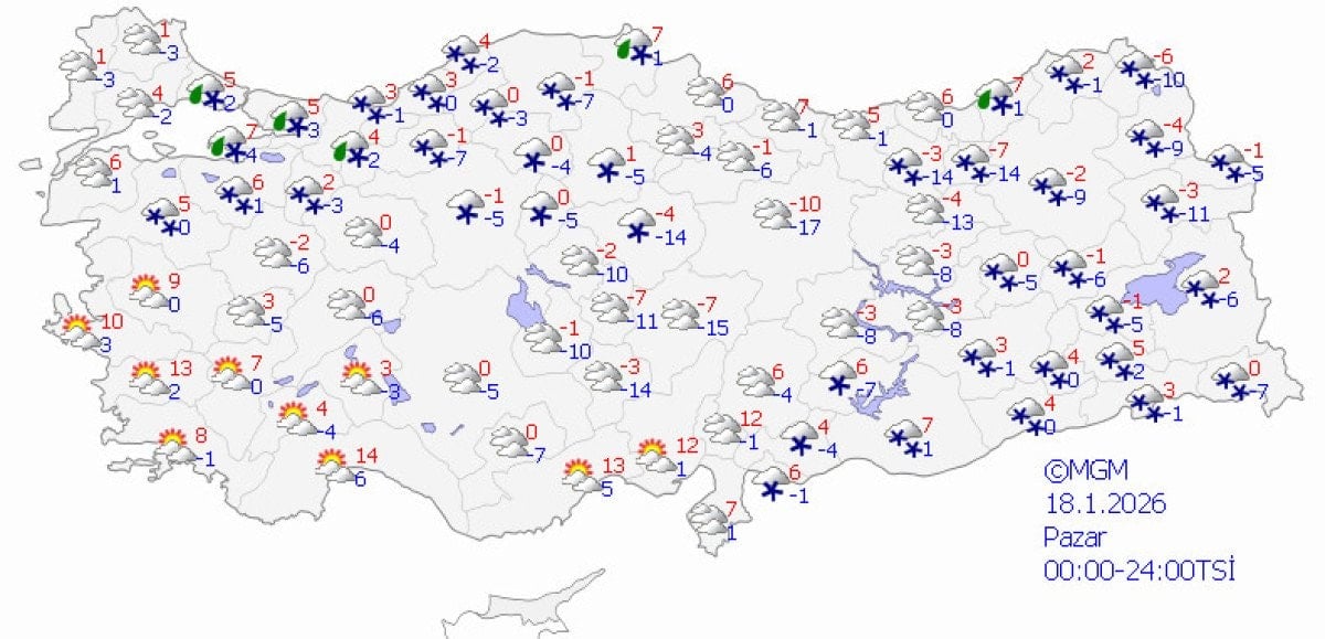 - Meteoroloji Genel Müdürlüğü'ne göre Türkiye genelinde kar yağışı ve soğuk hava etkisini sürdürüyor.